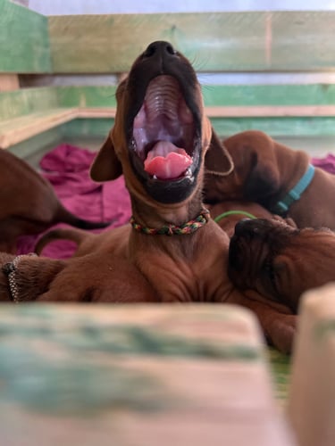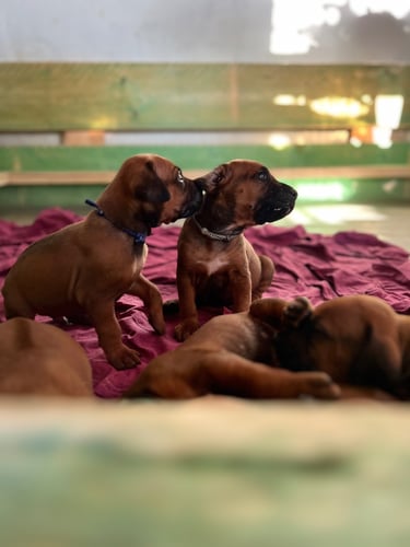 Nous sommes une famille qui vit au rythme de la nature, entourée de trois Ridgebacks qui partagent notre quotidien. Nous aimons une vie simple, proche de la terre et des saisons — un choix de vie qui guide notre approche avec nos chiens et nos chiots. Cette philosophie se reflète dans la manière dont nous prenons soin de leur santé, leur bien-être et leur alimentation, toujours dans une approche respectueuse et équilibrée.