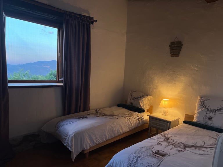 This quiet mountain setting is home to the sound of crickets and sheep bells drifting through the fields, the rooster’s call at dawn, and, on certain evenings, the distant echo of deer during the rut carrying across the valley. Set beside the hosts’ family home and an organic mushroom farm, the cottage invites you to slow down and reconnect with a simpler rhythm of rural life.
